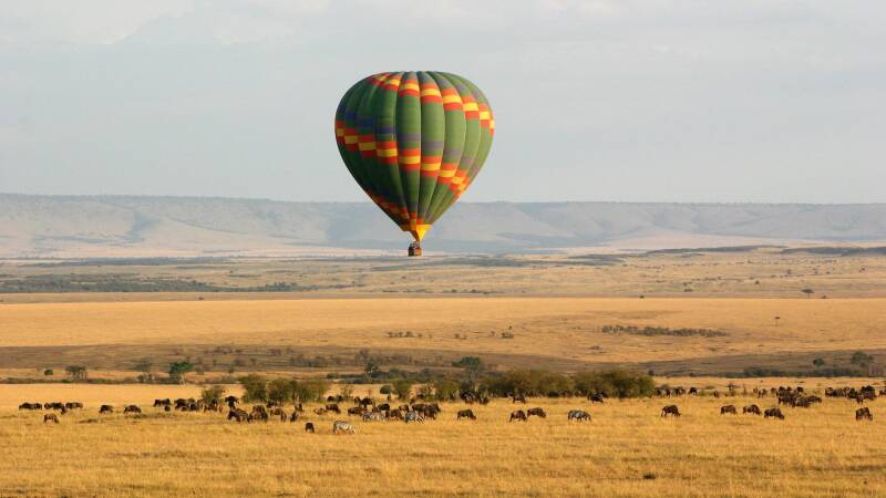 Rise for a unique experience: a hot air balloon ride at sunrise over the Serengeti. As you gently ascend into the sky, you watch the plains come to life with the first golden rays of sunlight. Below, herds of elephants, giraffes, and wildebeest move across the endless landscape, while predators quietly hunt in the morning light. After landing, you celebrate this with a champagne breakfast in the bush before starting your full-day game drive.